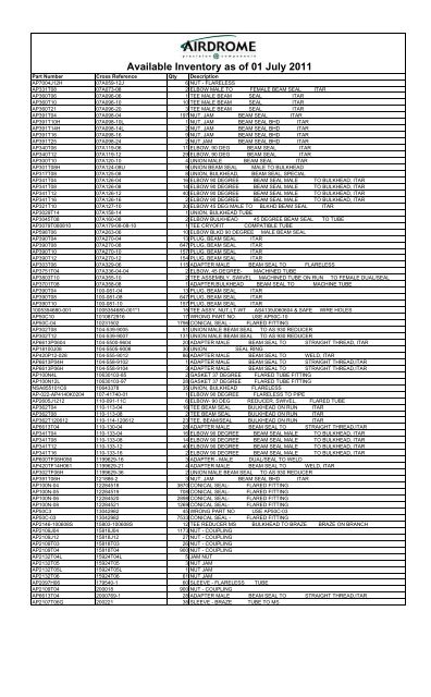 Available Inventory As Of 01 July 2011 Airdrome